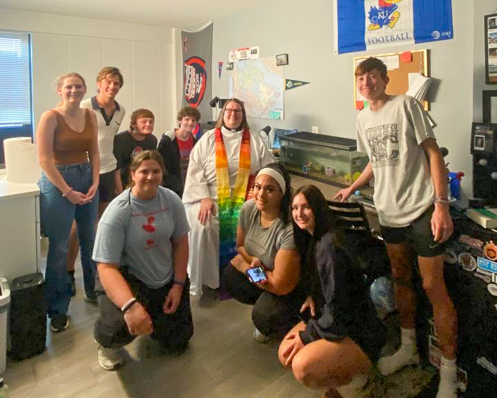 St. Anselm’s Canterbury House, Lawrence On October 24 students from the Canterbury House Lawrence visited Naismith Residence Hall to bless freshman Oliver Zigmund’s pet freshwater lobster, Pickle.