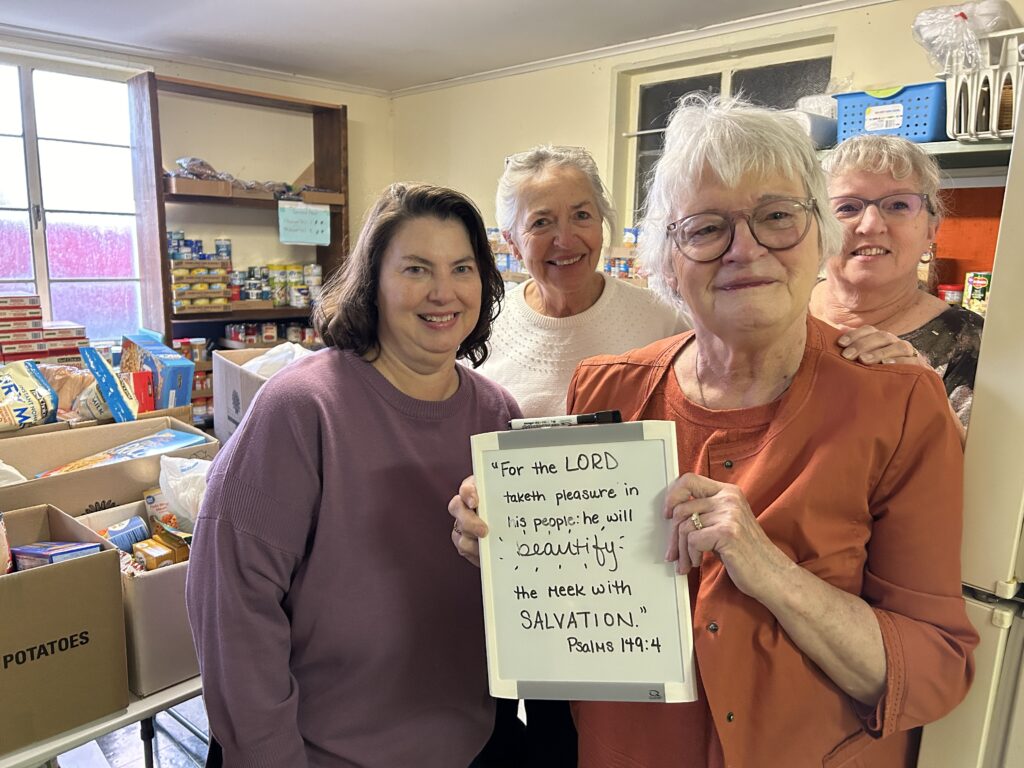 St. Thomas, Holton supports the Jackson County Ministerial Alliance Food pantry in a variety of ways throughout the year. The parish provides goods and funds for fundraisers throughout the year. In November, the parish accepted the call to stock the pantry. The parishioners donated requested items: soup, peanut butter, pasta and sauce and kids canned pasta and more. The ministry typically serves around 75 adults, 40 children and 50 seniors. The number of new families requesting food continues to increase and the pantry is serving around 75 families each month. The quote in the picture is posted in the Food Pantry.
