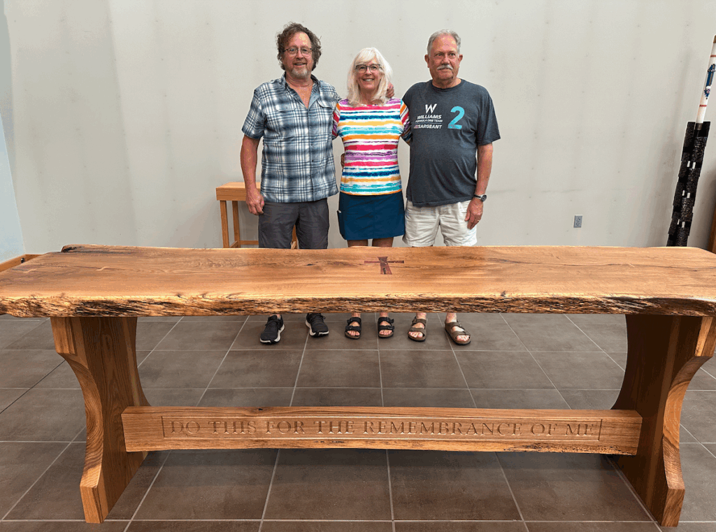 St. David’s, Topeka recently received a custom designed and built credence table, created by the brother of parish deacon, Susan Byler. Her brother, Gary Rexroad, is a hobbyist woodworker.