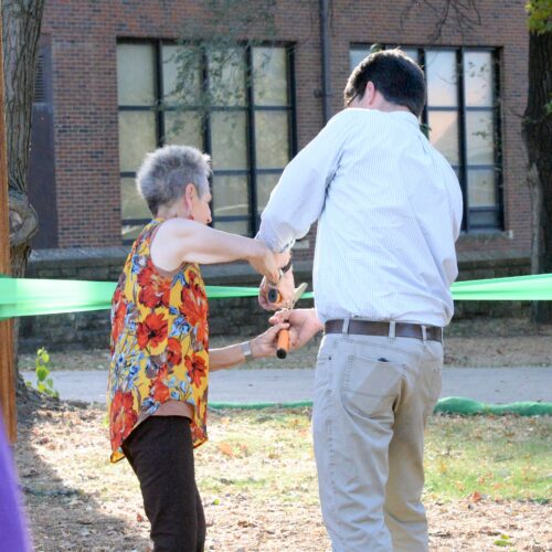 The Episcopal Diocese of Kansas celebrated the Ribbon Cutting and Grand Opening of Bethany House and Garden at its 163rd Annual Diocesan Convention on October 21 following the opening business session. Over 200 people attended the ceremony. The ceremony recognized the individuals who helped the garden project become a reality as they stood with banners representing the various groups: the Diocese of Kansas, community leaders and partners, educators and students, and donors and garden creators.