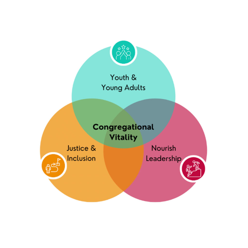 Bishop Bascom introduced the Strategic Plan in her convention address by connecting the convention theme “God’s Path Together / Juntos en el Camino de Dios” with four areas where God is calling the diocese to go. She reminded the convention delegates of a Venn diagram, which has become a familiar visual representing the four objectives: Congregational Vitality, Justice and Inclusion, Connection witth Youth and Young Adults, and Clergy and Lay Leadership.