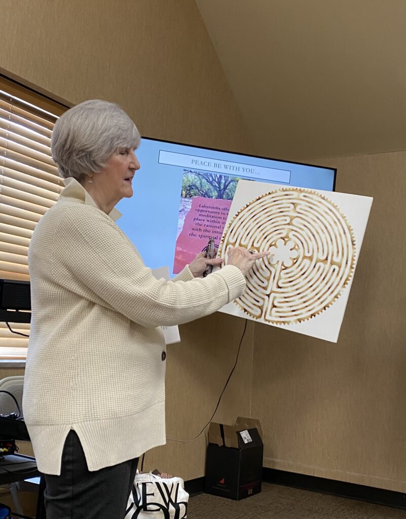 Led by parishioner Sybil Dana Reynolds, participants learned about the history of the ancient labyrinth and saw examples of labyrinths from all over the world which ranged from stones on a beach to giant builds covered with grass. Little is known about the origins or the builders, but most have predictable characteristics – a mystery of design shared by means we’ll never know.