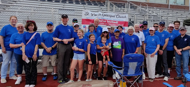 Although precise numbers are in some dispute, somewhere between 35 and 40 members of the Parish participated in the Relay for Life during its scheduled four-hour duration, many sporting blue St. Paul’s t-shirts.