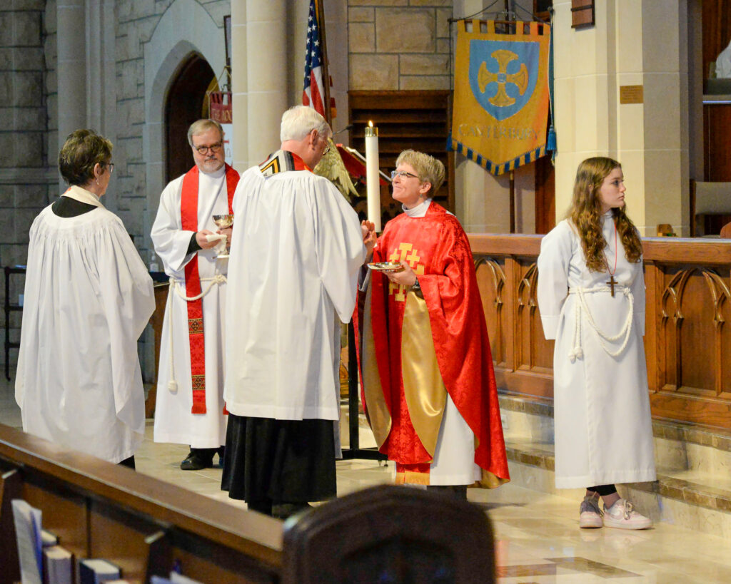 Bishop Cathleen Bascom presided, preached, and ordained the new deacons. Looking to the day’s Gospel and Old Testament readings, the bishop noted in her sermon that those who are ordained are called to be the body of Christ. She stated “The body of Christ is the church. Our ordination service today celebrates that every one of us is a crucial member of Jesus’ life, folded into his way of love for this time and place. Together, collectively we are the vehicles of Christ’s redemptive activity on earth. Anglicans believe that what Jesus wants to get done here and now is primarily done through us, all of us.”